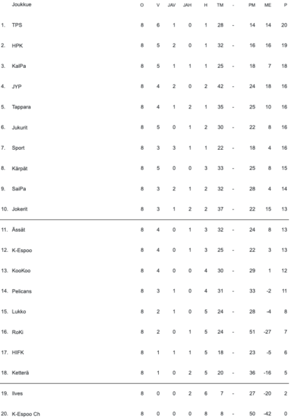 – Sunnuntaina toinen osa. 35 minuuttia pelattiin meidän näköistä, hyvää lätkää, jossa mentiin sekä määrättiin tempoa. Annettiin kaksi identtistä pikamaalia toisen erän viimeiselle vitoselle ja päästettin kaveri mukaan pelaamaan tuloksesta. Iso jäähy kolmanteen, mikä pisti meidät jahtaamaan, mutta noustiin vielä hienosti mukaan. Tällä kertaa rankkareilla lisäpiste Lohelle. Ajoittain pelataan hienoa lätkää, mutta opetellaan edelleen pysymään kiinni voitossa ja maksetaan siitä liian kovaa hintaa. Viikonvaihteessa Pohjanmaalle.