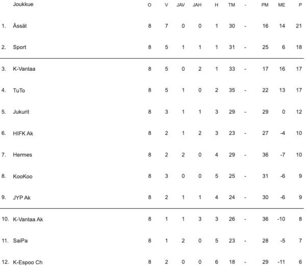 – Perjantaina vierailtiin Vantaalla ja tuntui, että vietiin peliä aina johtoasemaan asti, kunnes löysättiin. Kaveri pääsi aina tasoihin turhan helposti, mutta jatkoilla meille lisäpiste, päävalmentaja Timo Kuuluvainen analysoi.