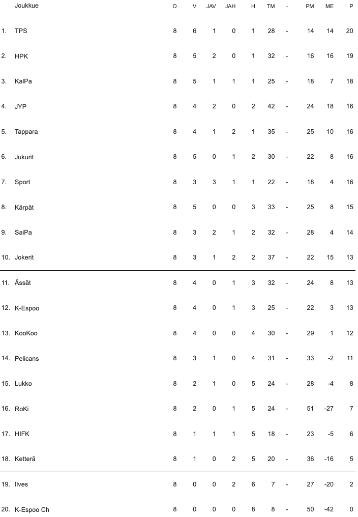 – Sunnuntaina toinen osa. 35 minuuttia pelattiin meidän näköistä, hyvää lätkää, jossa mentiin sekä määrättiin tempoa. Annettiin kaksi identtistä pikamaalia toisen erän viimeiselle vitoselle ja päästettin kaveri mukaan pelaamaan tuloksesta. Iso jäähy kolmanteen, mikä pisti meidät jahtaamaan, mutta noustiin vielä hienosti mukaan. Tällä kertaa rankkareilla lisäpiste Lohelle. Ajoittain pelataan hienoa lätkää, mutta opetellaan edelleen pysymään kiinni voitossa ja maksetaan siitä liian kovaa hintaa. Viikonvaihteessa Pohjanmaalle.