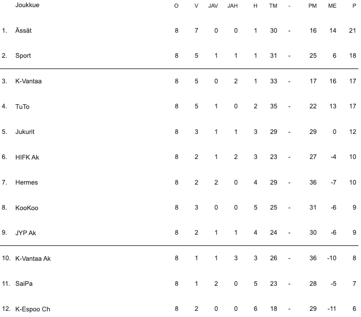 – Perjantaina vierailtiin Vantaalla ja tuntui, että vietiin peliä aina johtoasemaan asti, kunnes löysättiin. Kaveri pääsi aina tasoihin turhan helposti, mutta jatkoilla meille lisäpiste, päävalmentaja Timo Kuuluvainen analysoi.