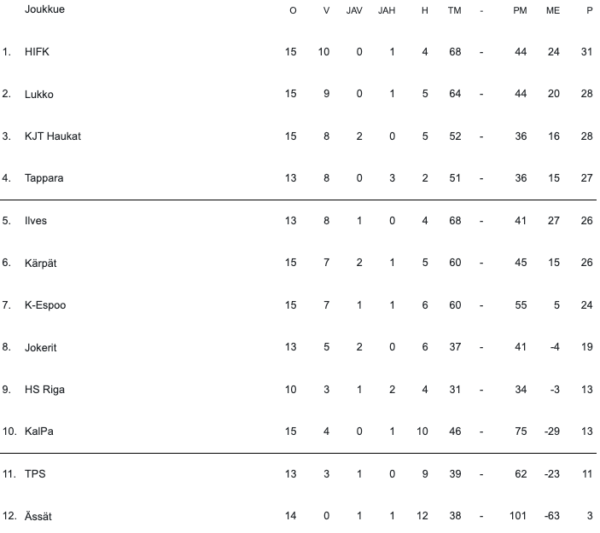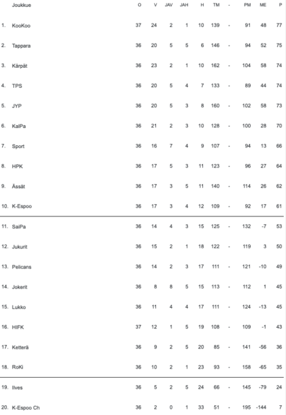 – Lauantaina pelattiin erinomainen ottelu Kärppiä vastaan, lukuunottamatta tehokkuutta maalipaikoissa. Ilme, työmäärä ja yhteistyö hyvällä tasolla. Viikonloppu antoi meille hyvää informaatiota loppukautta varten. Opit mukaan.