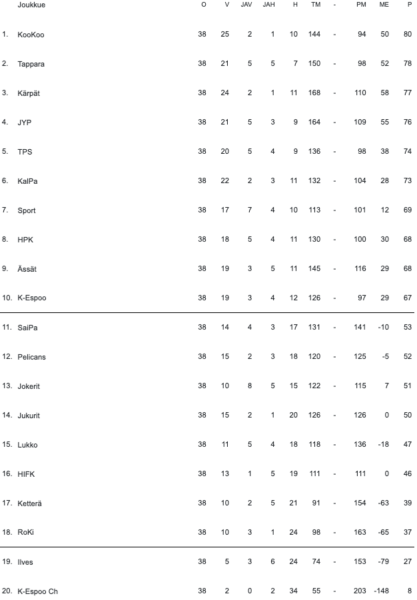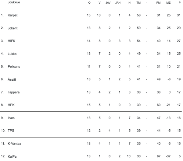 Kollit päätti alkusarjan voittoon – Taistelu pudotuspelipaikoista jatkuu alemmassa SM-sarjassa