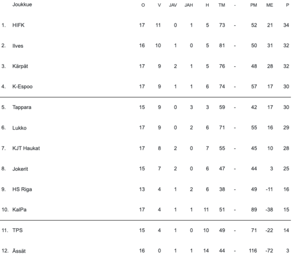 12:00 | Jokerit | – | HIFK |