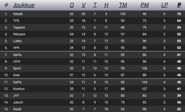 Loukkaantuneet: Teemu Tallberg (7–9 viikkoa), Juho Keränen (5 viikkoa), Micke Åsten (1 viikkoa), Niklas Nordgren (toistaiseksi), Thomas Nykopp (toistaiseksi)