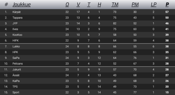 32 Lennart Petrell – 19 Juho Keränen – 14 Teemu Engberg
