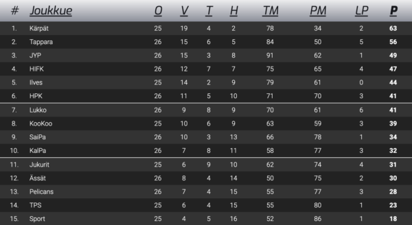 HIFK pelasi viikonloppuna Kärppiä ja Tapparaa vastaan samalla kokoonpanolla, eikä tänäänkään nähdä kuin yksi muutos.