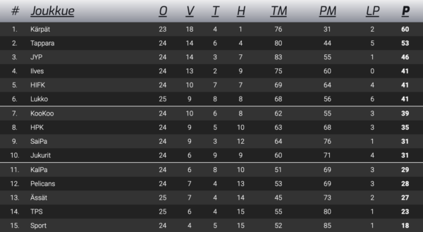 Kärpät porskuttaa tällä hetkellä kevyessä 11 matsin voittoputkessa.