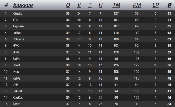 Illalla taistellaan sarjasijoituksista
