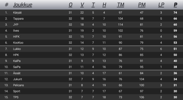 – Moraalista tai yrittämisestä meillä ei ole missään vaiheessa ollut kiinni, mutta kyllä siinä omanlaisensa puskuri on, mikä laittaa varmasti jokaiselle hieman lisää painetta näyttää omia parhaita puoliaan kaukalossa.