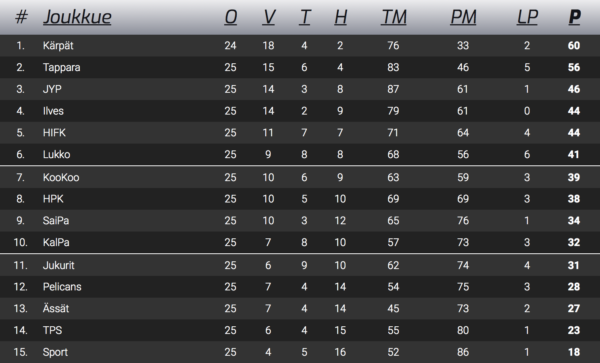 18 Teemu Tallberg – 76 Jere Sallinen – 4 Iikka Kangasniemi
