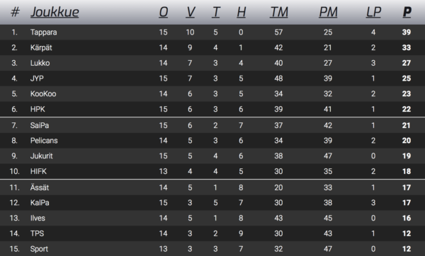 JYP on voittanut yhdeksästä edellisestä ottelustaan seitsemän ja on sarjataulukossa sijalla neljä. HIFK on kaksi ottelua vähemmän pelanneena seitsemän pistettä jyväskyläläisten perässä.