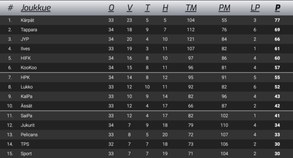 36 Joonas Järvinen – 34 Aleksi Laakso
