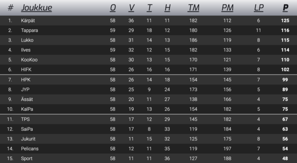 HIFK kohtaa runkosarjan viimeisessä himamatsissaan JYPin. Kaksi kierrosta ennen runkosarjan päätöstä vierasjoukkue on jo varmistanut kahdeksannen sijan. Stadilaiset puolestaan tarvitsevat tänään yhden sarjapisteen HPK:ta enemmän varmistaakseen kuudennen sijan ja viimeisen suoran pudotuspelipaikan.