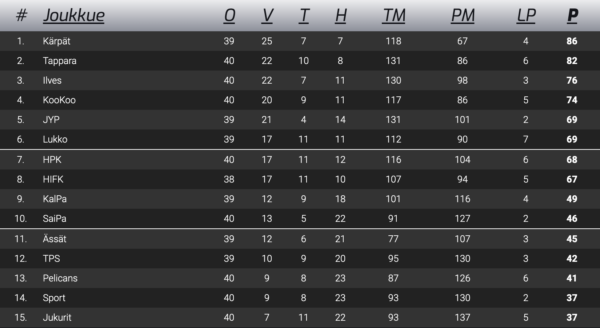 Hurjan alkukauden jälkeen tamperelaisten suorittaminen tuloksen valossa on hieman taantunut. Heikkouksia joukkueesta on kuitenkin äärimmäisen hankala löytää.