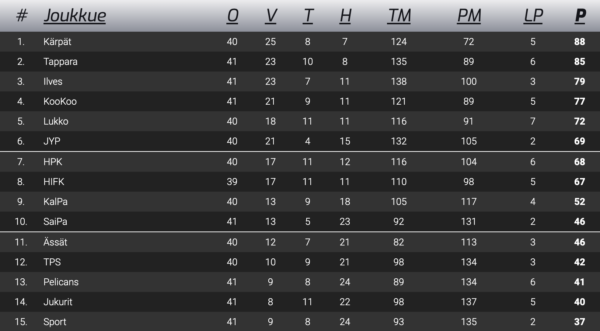HIFK:n viikon ensimmäinen matsi pelataan tänään keskiviikkona Nordiksella. Vastaansa stadilaiset saavat pudotuspelipaikasta taistelevan Ässä-ryhmän. Joukkueet ovat kohdanneet kahdesti aiemmin tällä kaudella ja voitot ovat tasan 1-1.
