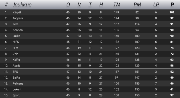 Joukkueet löytyvät tällä hetkellä sarjataulukosta sijoilta kuusi ja yksitoista. HIFK tähyää mukaan tasaiseen kärkikastiin ja TPS puolestaan taistelee viimeisestä pudotuspelipaikasta.