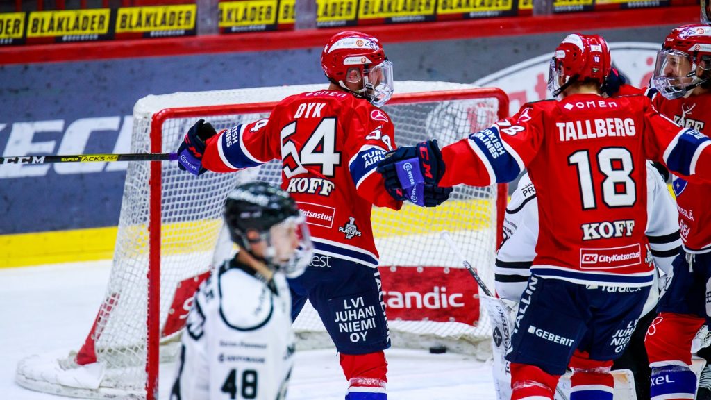 Dyk (3+3) siirtyi HIFK:n sisäisen pudotuspelipistepörssin kärkeen tasapistein syöttöpisteen ottelussa saalistaneen Micke Åstenin (2+4) kanssa.
