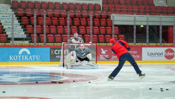 Veskarit saapuvat treenipäivinä hallille muuta joukkuetta aiemmin. Alkulämpöjen jälkeen Lundell ampuu satoja kiekkoja suojateilleen Nordiksen jäällä ennen muun joukkueen tuloa.