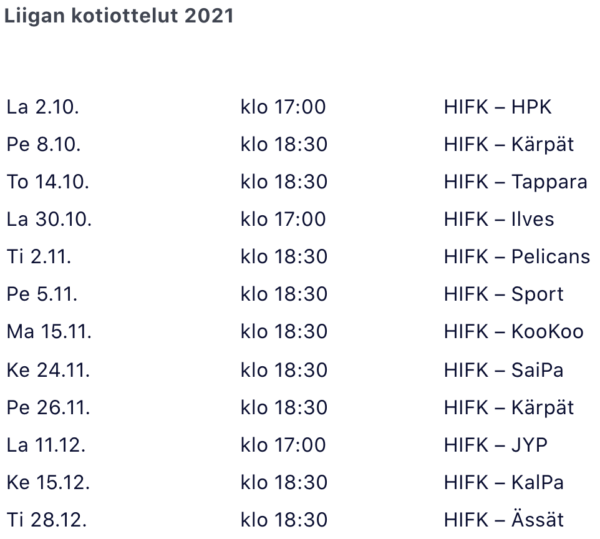 Lipunmyynti HIFK:n loppuvuoden kotiotteluihin käynnistyi Ticketmasterissa maanantaina 27. syyskuuta.