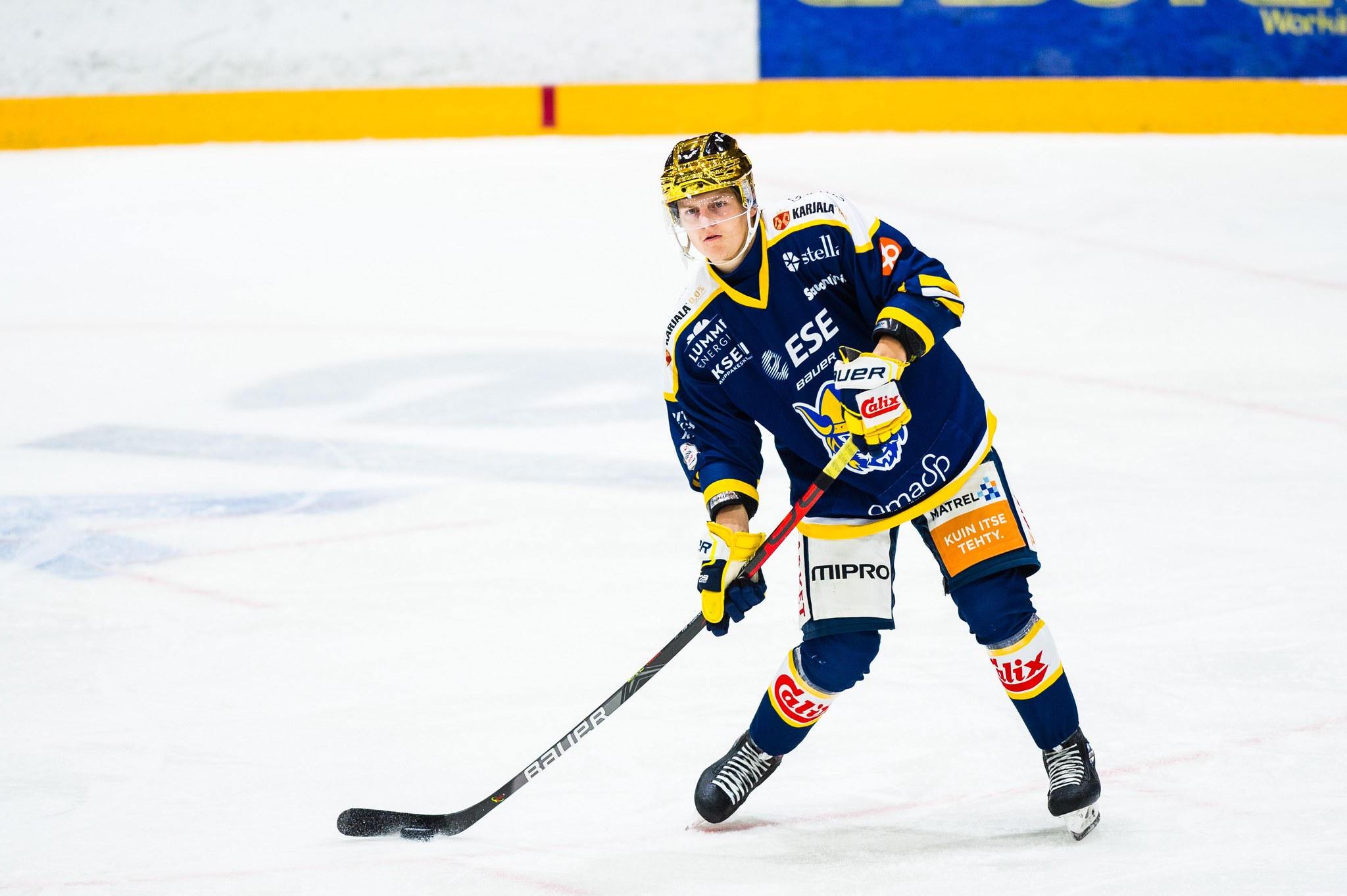 Illan isäntäjoukkueen kultaista kypärää kantaa HIFK:n junnuista Mikkeliin viime kaudella siirtynyt 20-vuotias puolustaja Axel Rindel (4+13=17).