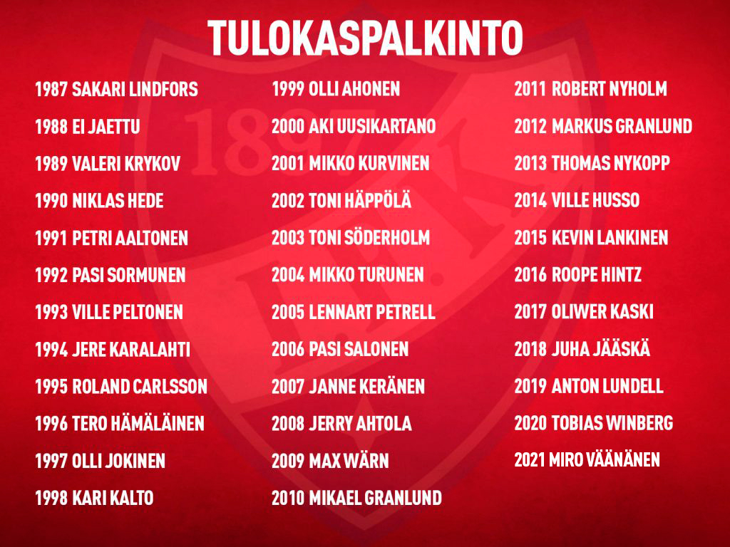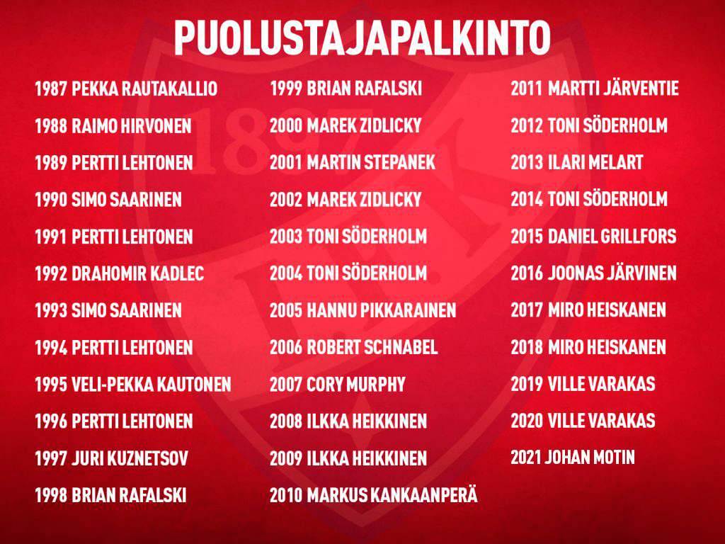HIFK on palkinnut kauden ansioituneimpia pelaajia 1980-luvulta lähtien. Katso myös kaikki aiemmat voittajat.