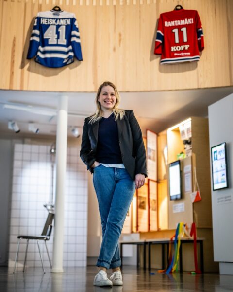 – Viime vuonna olimme käymässä täällä toisessa tapahtumassa ja utelimme, olisiko HIFK-aiheinen näyttely olla mahdollinen tulevalle juhlakaudelle. Saimme vihreää valoa ja aloimme rakentamaan tätä kokonaisuutta yhteistyössä seuran muiden lajien kanssa, sanoo HIFK:n myynti- ja markkinointipäällikkö Raakel Koittola.