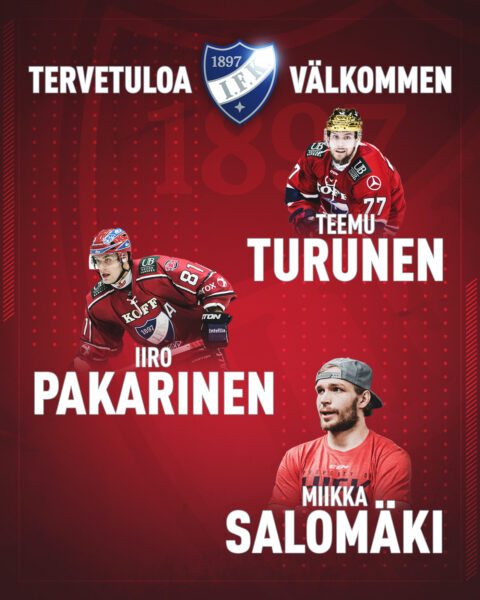 HIFK on tehnyt loppukauden kattavat sopimukset kolmen hyökkääjän kanssa. HIFK:hon siirtyvät Iiro Pakarinen, Teemu Turunen ja Miikka Salomäki.