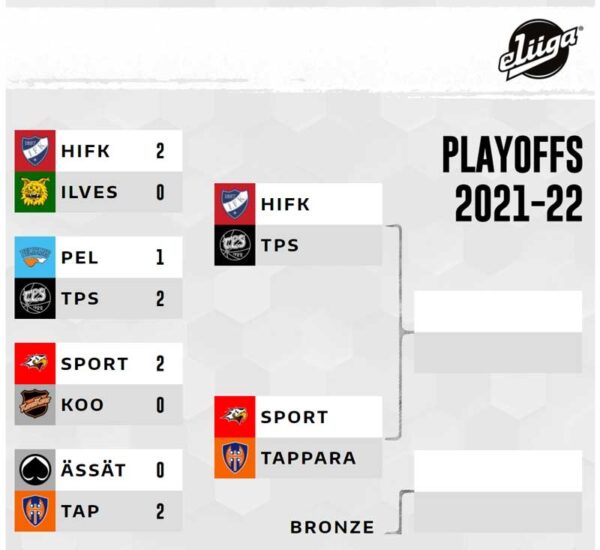eLiigan pudotuspeleissä on oteltu nyt kaksi kierrosta joulukuussa päättyneen runkosarjan kymmenen parhaan joukkueen kesken. Pääosin runkosarjassa selvitetyt voimasuhteet ovat pitäneet, mutta yllätyksiäkin on nähty. Jatkoon ovat edenneet HIFK, TPS, Sport ja Tappara. Kolmen ensimmäisen joukkueen pelaajat ovat kaikki nuoria ja nälkäisiä 18-vuotiaita konsolikiekkosankareita, kun taas Tapparan pelaaja ja viime eLiiga-kauden mestari, Arttu ”Artuzio” Mustila, edustaa 24-vuotiaana konkarina kokeneempaa pelaajakaartia.