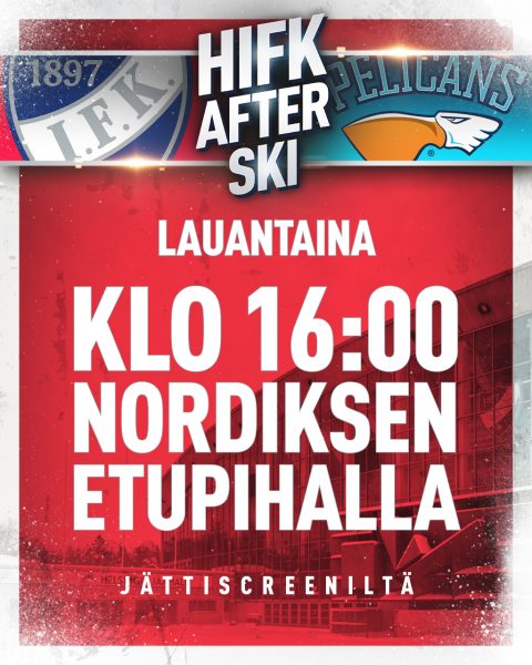 HIFK järjestää lauantaina 5.2. kaikille avoimen kisakatsomon Nordiksen etupihalla. HIFK-Pelicans ottelu alkaa kello 17:00 ja ottelu on studioineen seurattavissa ulkona olevalta jättiscreeniltä. Ennen ottelua pihalla vierailee haastattelussa päävalmentaja Ville Peltonen. After ski-tunnelmasta vastaa DJ.