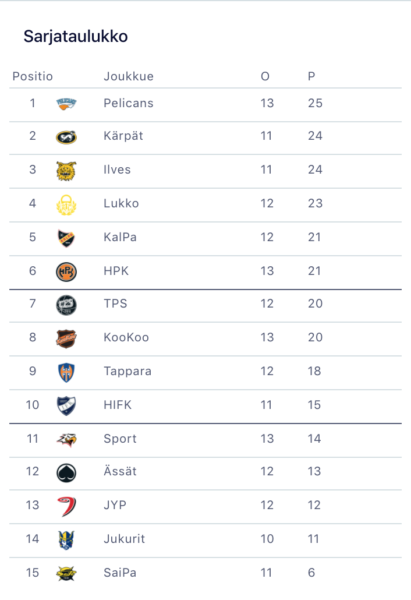 Sarjataulukossa joukkueiden välillä on kahdeksan pisteen ero raumalaisten hyväksi. Ero tulee jo siitä, että Lukko on onnistunut kääntämään otteluitaan voitoksi myös vieraskaukalossa. HIFK hakee vielä ensimmäistä voittoaan böndellä.