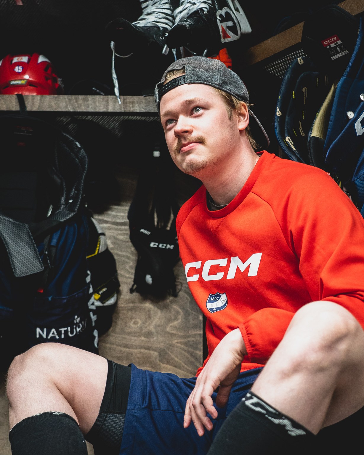– Tää mun kulma on aika ahdas varsinkin, kun Miro Väänänen istuu vieressä. Siltä on ihan turha odottaa tilaa. Sen kamat on ihan sekasin koko ajan, Åsten kuittaa pilke silmäkulmassaan.