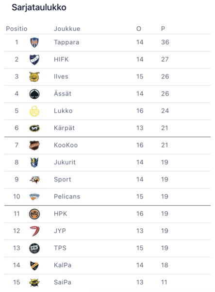 HIFK-SaiPa klo 18:30. Ovet auki klo 17:30.