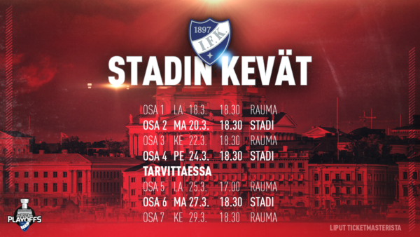 Stadin kevät käynnistyy ja neljännesfinaalisarjan ensimmäinen osa pelataan tänään lauantaina Raumalla. HIFK haastaa pudotuspelisarjassa runkosarjan kolmosen, Lukon.