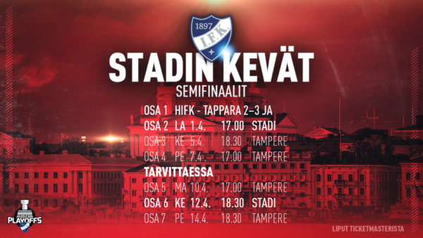 OSA 2: HIFK-Tappara klo 17:00. Ovet auki klo 15:30.