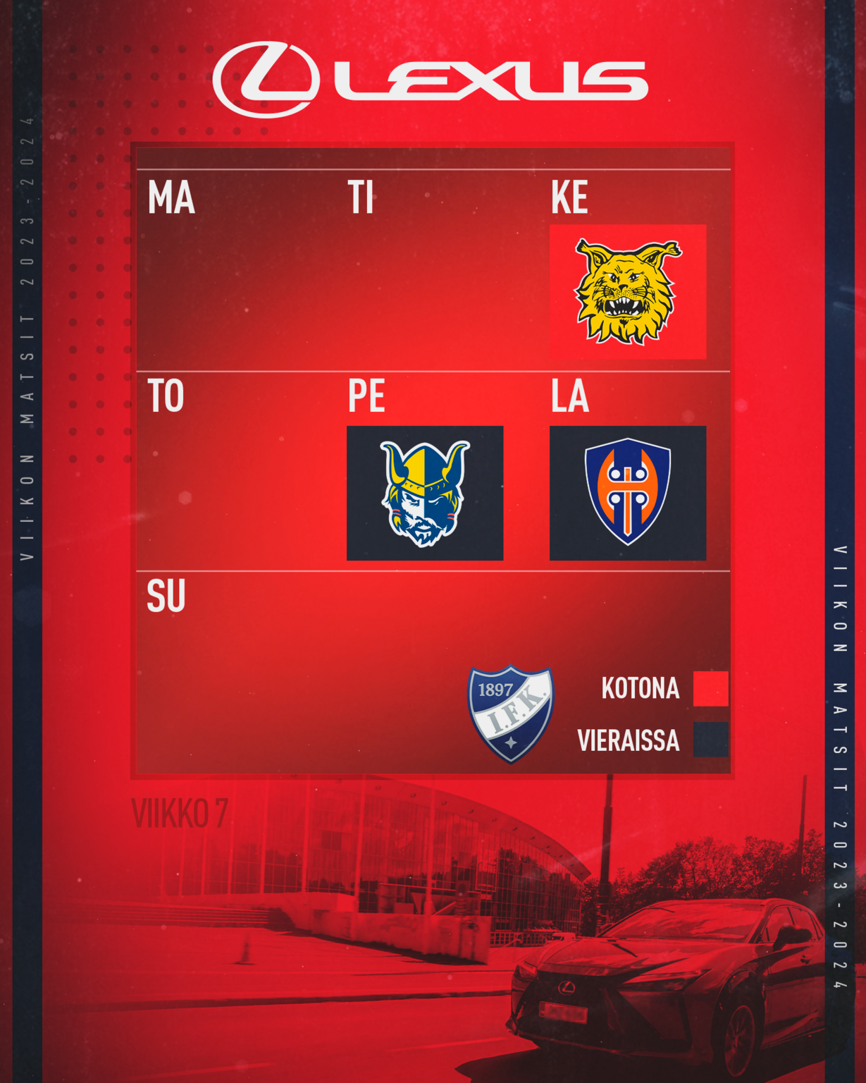 Viikon ainoa kotiottelu pelataan keskiviikkona Ilvestä vastaan.