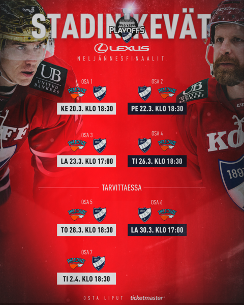 Neljännesfinaalit OSA 1: Pelicans-HIFK klo 18:30.