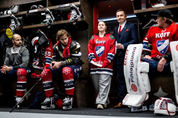 HIFK:n hyväntekeväisyyskumppani Sylva oli näkyvästi esillä keskiviikon HIFK-JYP-ottelussa.