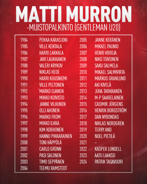 Gentleman-palkinto (U20): Patrik Tasavuori