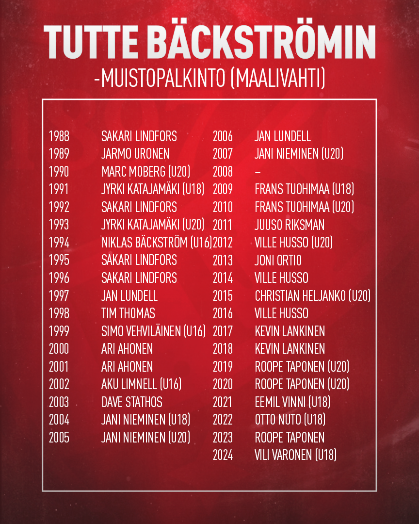 Tutte Bäckströmin maalivahtipalkinto: Vili Varonen (U18)