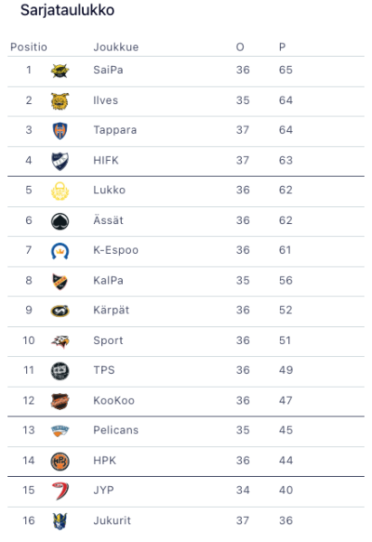 82 Aatu Karjalainen – 79 Santeri Hartikainen – 46 Jasper Kuhta