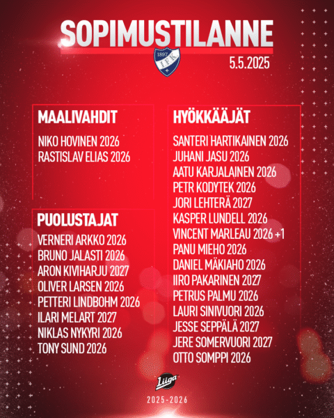 – Olemme äärimmäisen iloisia, että ”Pappi” ja ”Petu” halusivat jatkaa meillä. Molemmat ovat esimerkillisiä joukkuepelaajia ja tuovat omalla tekemisellään kilpailua joukkueen sisälle, iloitsee urheilujohtaja Janne Pesonen.