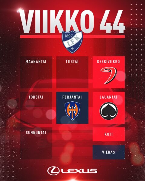 HIFK pelaa kaksi tämän viikon kolmesta pelistään kotona. Kotipelipäivät ovat keskiviikko ja lauantai. Perjantaina joukkue vierailee Tampereella.