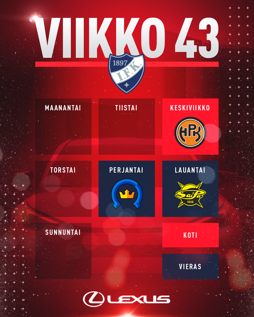 Joukkueella on edessään kolmen ottelun viikko. Viikon ainoa kotimatsi pelataan keskiviikkona Nordiksella, kun HPK vierailee Töölössä.