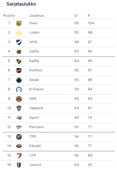 Runkosarjan loppu häämöttää ja HIFK:lla on enää neljä ottelua jäljellä. Viikkoon lähdettäessä joukkue on sarjataulukon sijalla kolme.