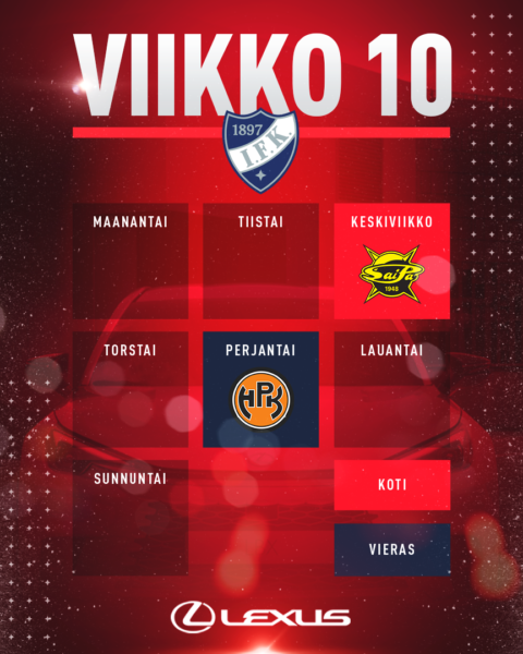 Tällä viikolla HIFK pelaa kahdesti. Keskiviikkona Nordiksella pelataan viikon ainoa himamatsi, kun SaiPa tulee vääntämään sijoituksista neljän parhaan joukossa. Perjantaiksi joukkue matkustaa Hämeenlinnaan HPK:n vieraaksi.