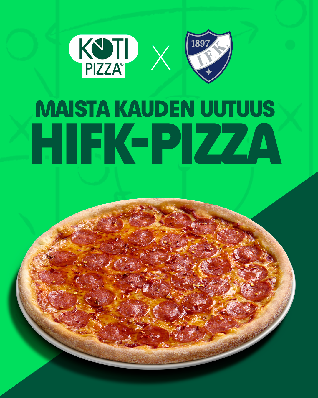 Tämän kauden uutuutena Kotipizzan menusta löytyy HIFK-pizza: makunystyröitä hemmottelee pepperoni tuplana, Calabrian chilirouhe ja hunaja.