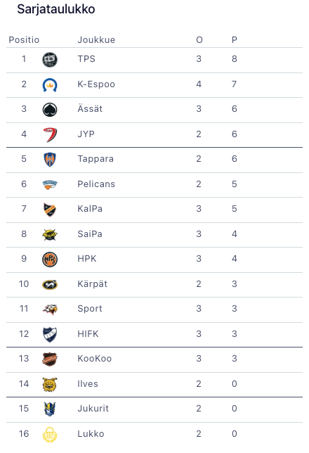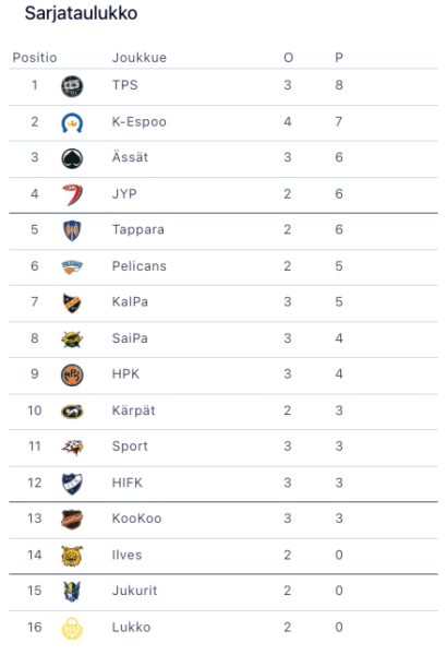 Loukkaantuneet/sairastuneet ja arvio paluusta: Arttu Kärki (day-to-day), Panu Mieho (arvioidaan), Petteri Lindbohm (arvioidaan), Ilari Melart (paluu vk 41-43), Aron Kiviharju (paluu vk 42-43), Iiro Pakarinen (paluu tammikuussa), Juhani Jasu (arvioidaan)