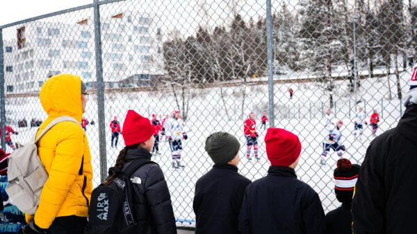 Talvilomaa viettävä ja ilahduttavan punaisiin pukeutunut yleisö löysi myös kaukalon äärelle ja pääsi tapaamaan pelaajia ennen ja jälkeen treenien.