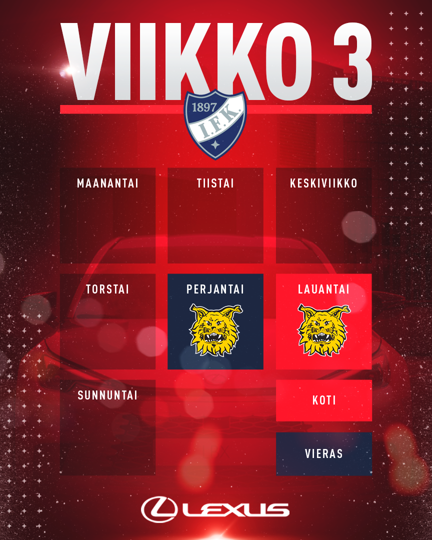 HIFK skulaa viikolla 3 kaksi matsia. Perjantaina vieraillaan Nokia Arenalla Ilveksen vieraana ja lauantaina samat jengit kohtaavat Nordiksella.