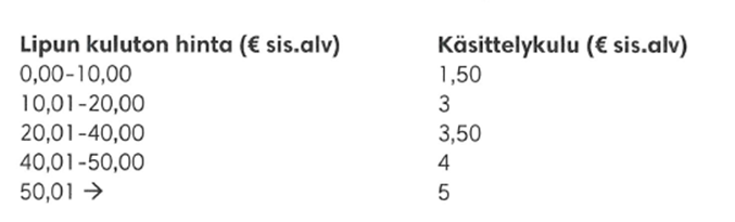 - Lippuja voi varata ainoastaan puhelinpalvelusta. Varausaika korkeintaan 24h